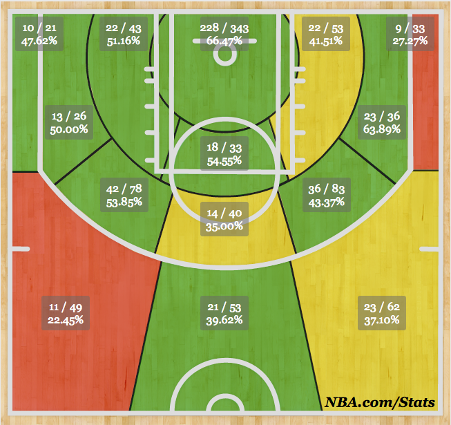 In terms of overall ranking, Miami is a weaker opponent than San Antonio faced last round in Oklahoma City, but with Miami coasting to the second seed during the regular season, that stat could be a bit skewed… These two teams boast the two best offenses in the league, ranking first and second on the offensive side in both shooting efficiency and effective field goal percentage. The Spurs’ defense, however, looks to be more up to the challenge than is Miami’s… Chris Bosh and co. will have to do their best to shut down the paint against San Antonio’s common two-big lineups, but their ranking defensively in the paint suggests they’ll be up for the challenge.