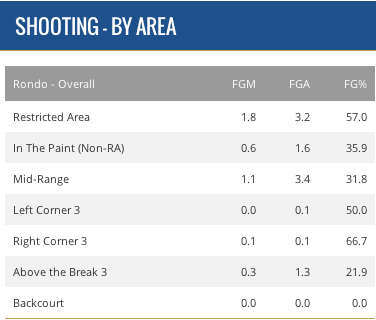 Rondo’s dwindling finishing ability (a 35.9 percentage in the paint) is a real problem, as it’s the only way he’s ever been able to consistently put the ball in the basket, which, no matter how many assists you get, is literally the name of the game.