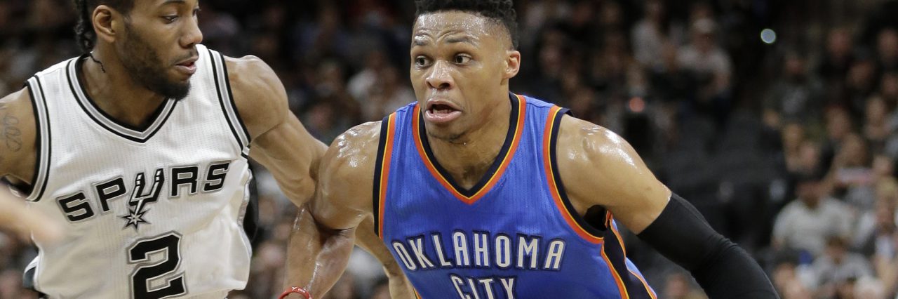 The special case is Westbrook – his team is the worst of the candidates’ by far, but his stats are so eye-popping that they could still push him over the edge. Tom Scocca of Deadspin noted that even if Westbrook didn’t record a point, rebound, or assist while appearing in every game the rest of the season, he’d still finish with averages of 25 points, 8 rebounds, and 8 assists. Could this force the voters to choose him?