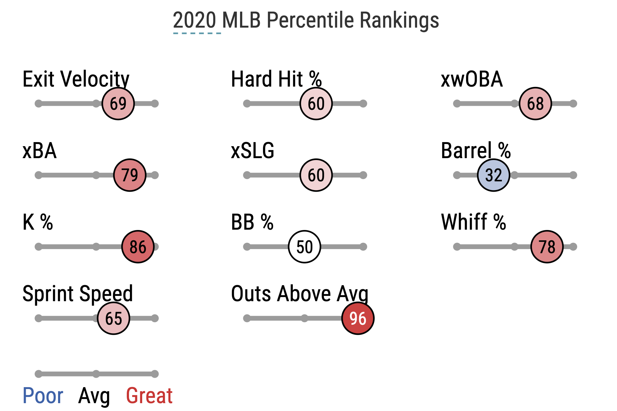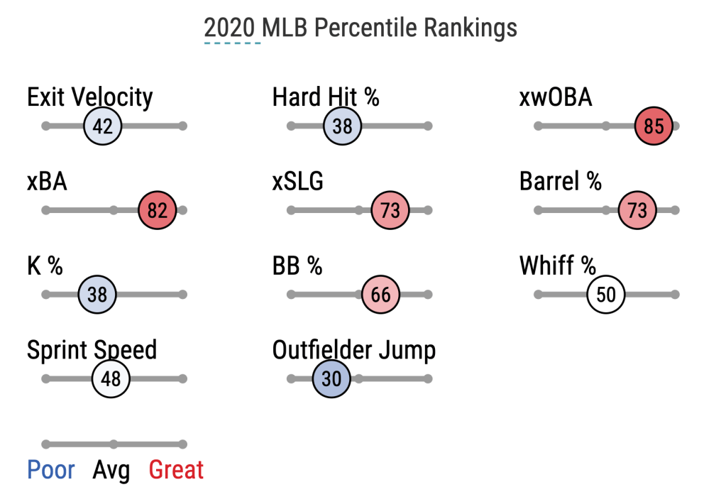Even in a “down” shortened 2020, he was one of the better hitters in all of baseball regardless of position, and his Statcast peripherals reflect that: