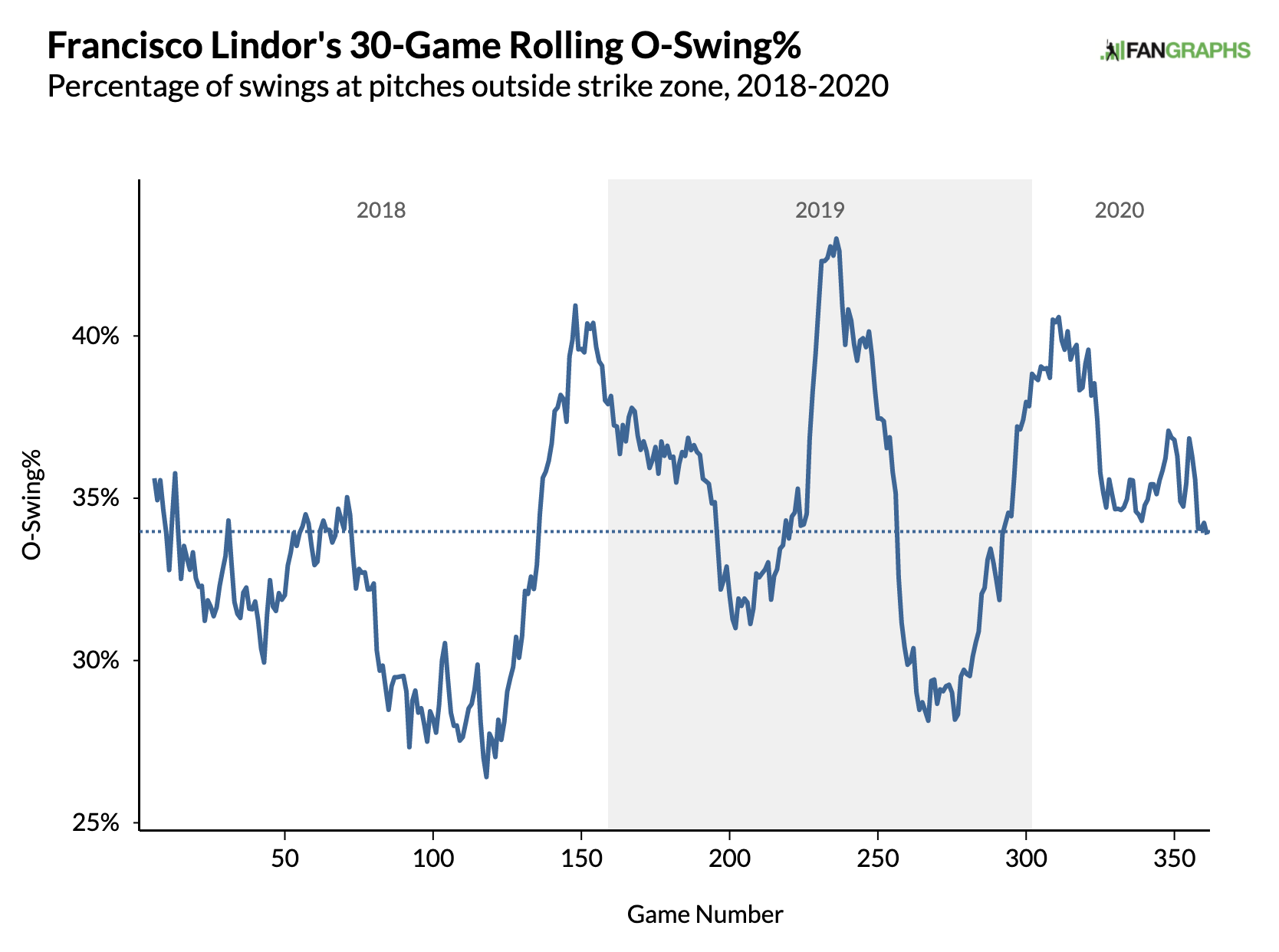 Count me among the people with little concern about the 2020 dip. Although he was chasing more pitches outside the zone, he wasn’t far off from his general levels over the past couple of years, and improved back to stable levels as the shortened season progressed:
